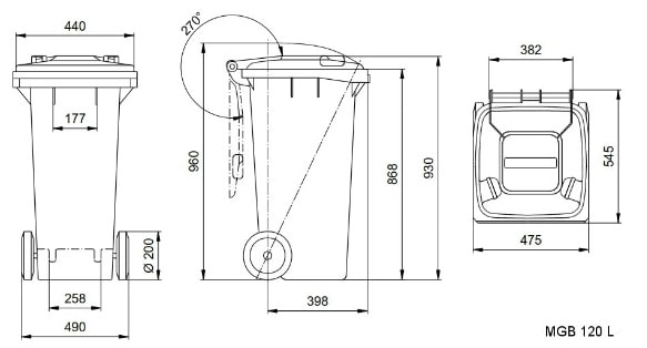 Євроконтейнер (бак для сміття) ТМ «WEBER» з об′ємом 120 літрів призначений для тимчасового зберігання ТПВ. Контейнери WEBER розроблені і виготовлені у відповідності зі стандартом DIN 30700 / EN 840. У виробництві контейнерів використовується тільки , високоякісна сировина (HD-PE).