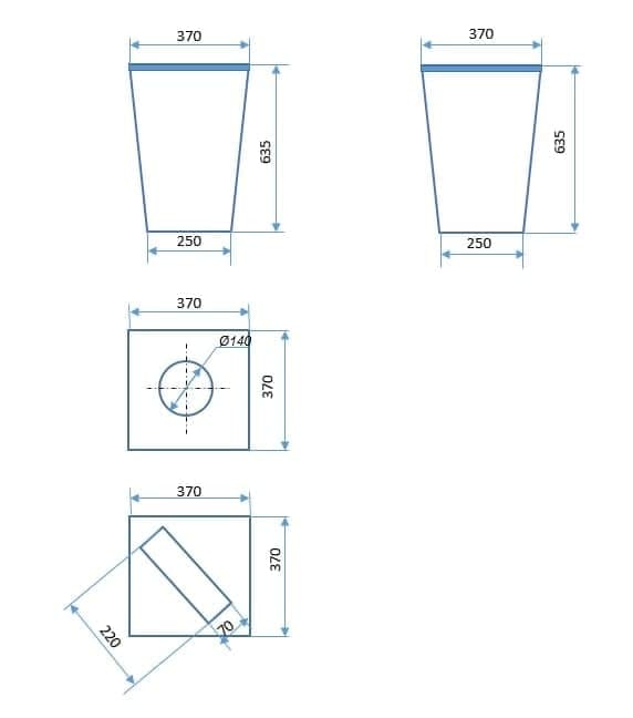 Корпус урны: толщина металла — 0,8-1 мм, высота — 635 мм;